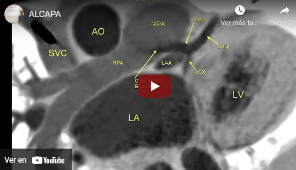 A 4 year-old child with dilated LV ,,, CT was done >>> ALCAPA Anomalous LCA from PA. Thin Inverted MIP projection