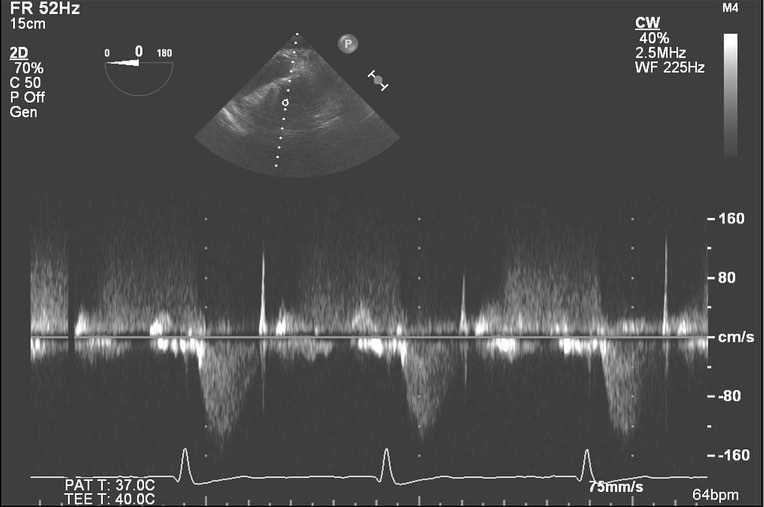 🎥4️⃣: The deep transgastric position at zero degrees can be used to assess for valve gradients by TEE. Here is a typical view. Color doppler shows there is some mild valvular regurgitation.