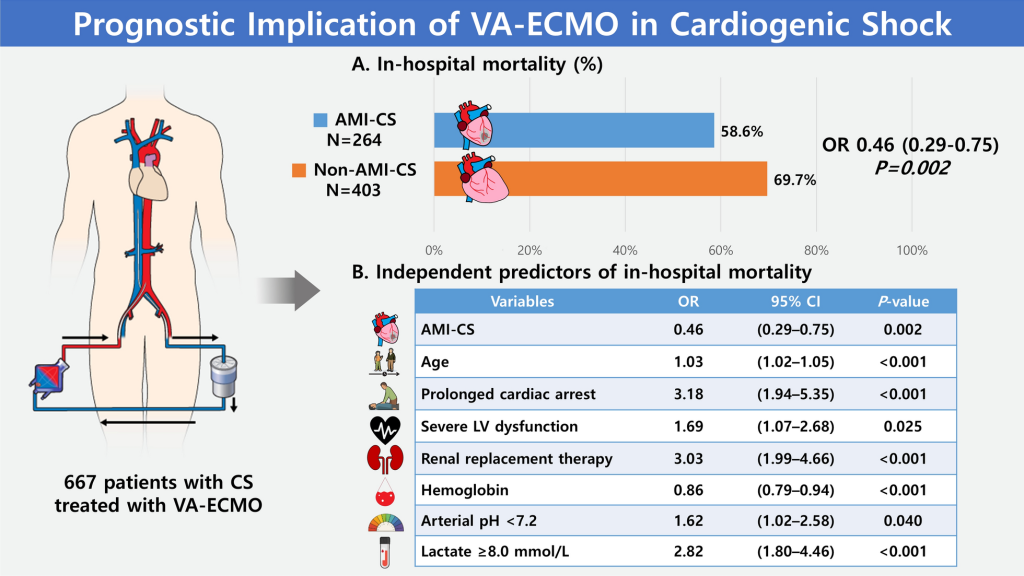Summary This retrospective study aimed to evaluate clinical outcomes in patients receiving veno-arterial extracorporeal membrane oxygenation (VA-ECMO) for cardiogenic shock (CS), comparing acute myocardial infarction-related cardiogenic shock (AMI-CS) with non-AMI-CS. Analysis of data from 667 patients treated between 2008 and 2023 showed that AMI-CS was associated with significantly lower in-hospital mortality compared to non-AMI-CS. Independent […]