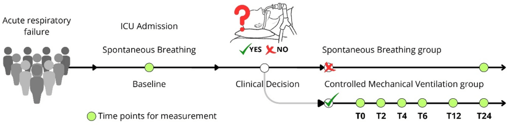 The study examined whether AHRF patients who transition early to controlled mechanical ventilation (CMV) demonstrate lower inflammation and more homogeneous ventilation compared with those kept on spontaneous breathing (SB).