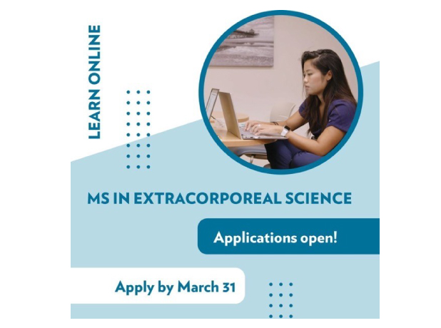 The Master of Science in Extracorporeal Science (MS-ECS) provides students with the cognitive knowledge and application of extracorporeal technology. The MS-ECS program is an online, distance-based curriculum aimed to meet the growing needs of the international perfusion and critical care communities. The curriculum is designed to serve global communities in the treatment of patients with advanced cardiovascular and pulmonary diseases using extracorporeal technology.