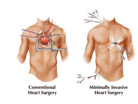 Minimally invasive heart surgery (also called keyhole surgery) is when a conventional operation is performed on or inside the heart using small incisions. The surgeon also sometimes uses specialized instruments.