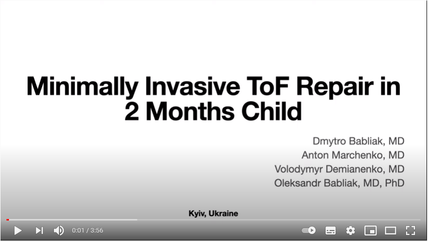 We are presenting the case of the minimally invasive total repair of Tetralogy of Fallot in a 2 months old male patient.