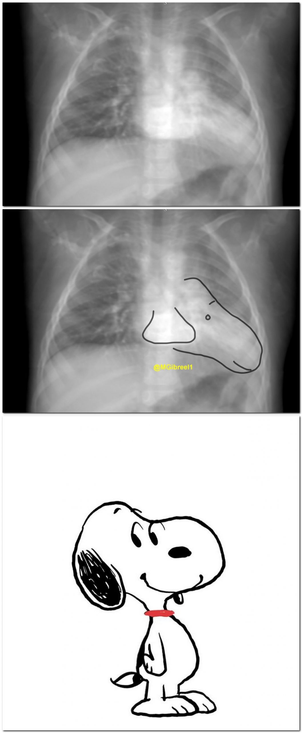 Thick coronal-reformatted average (mean) projection (X-ray like) >>snoopy sign.