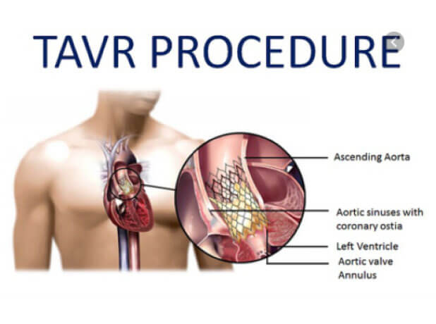 During this minimally invasive procedure a new valve is inserted without removing the old, damaged valve. The new valve is placed inside the diseased valve. The surgery may be called a transcatheter aortic valve replacement (TAVR) or transcatheter aortic valve implantation (TAVI).